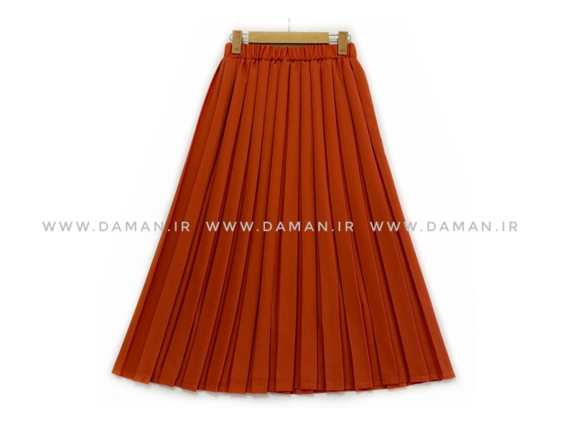 دامن پلیسه نارنجي كرپ قد 80 كد (211)
