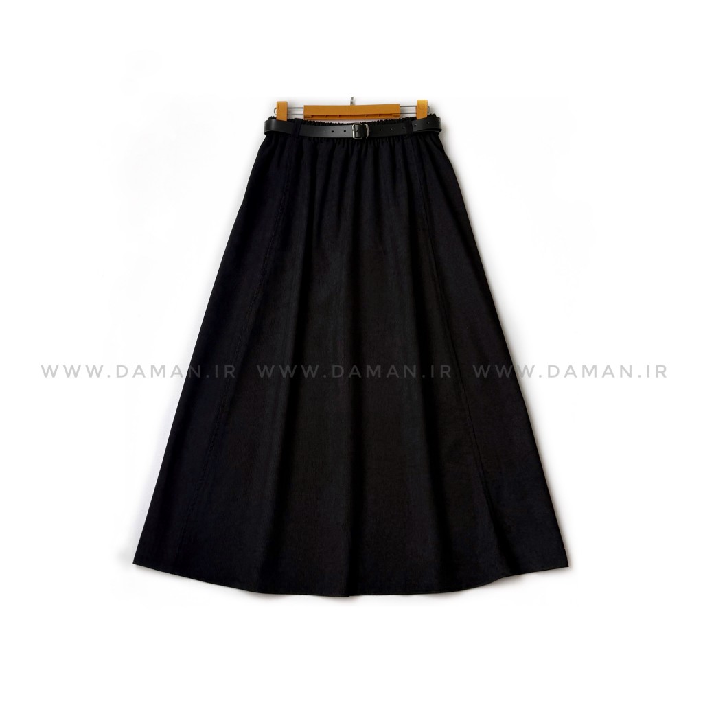 دامن مخمل کبریتی مشکی قد 90 با کمربند کد ( 111 )