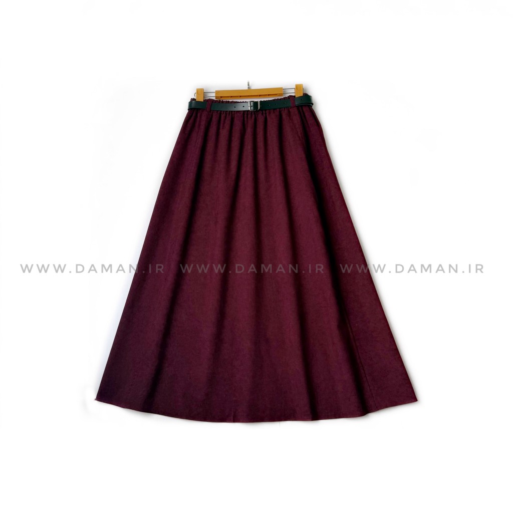 دامن مخمل کبریتی زرشکی قد 80 با کمربند کد ( 111 )