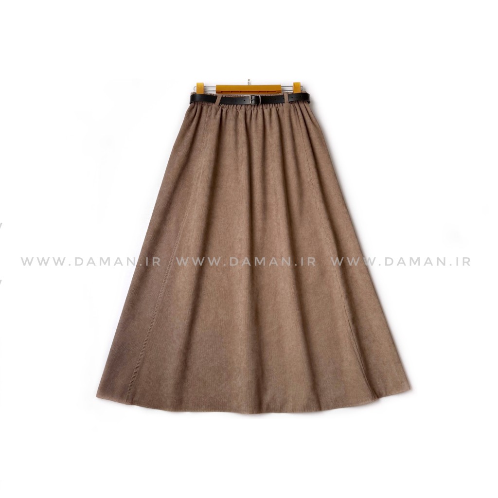 دامن مخمل کبریتی کاکائویی قد 80 با کمربند کد ( 111 )