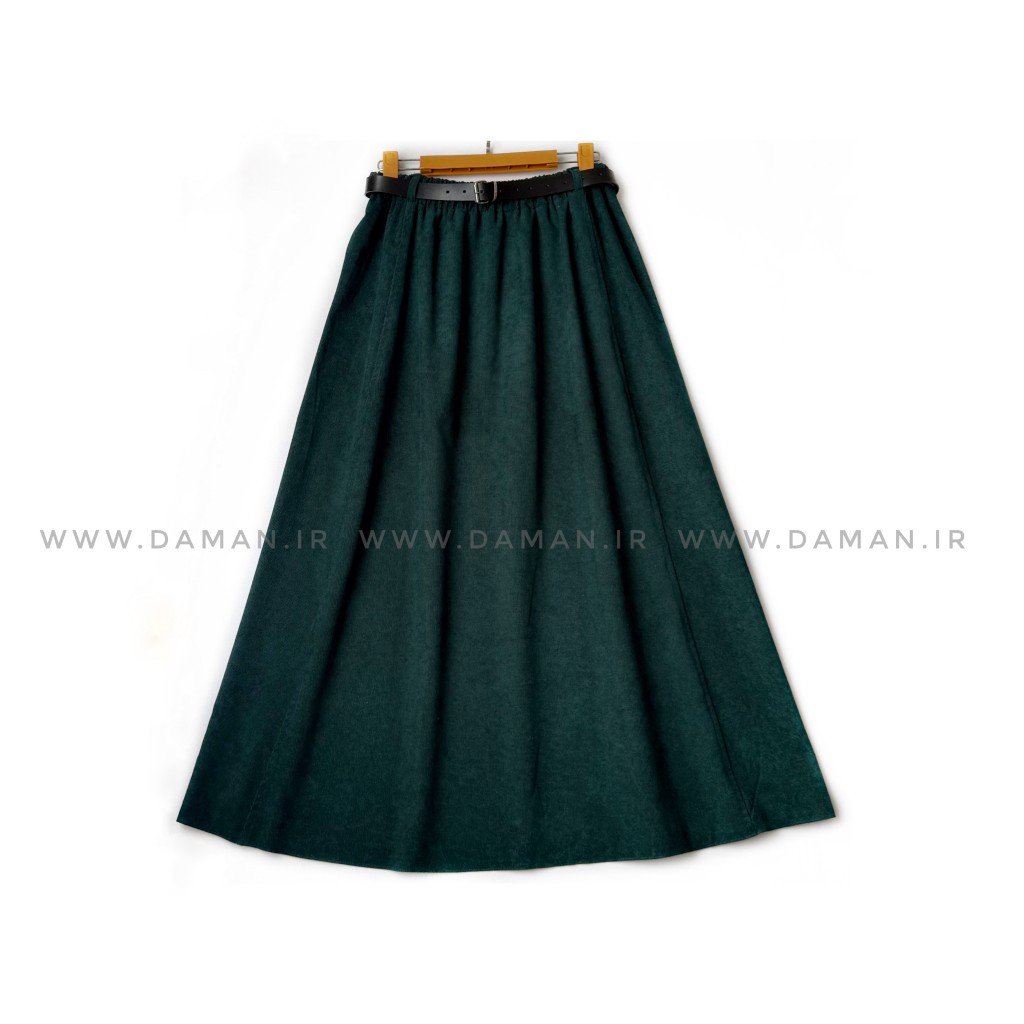 دامن مخمل کبریتی یشمی قد 90 با کمربند کد ( 111 )