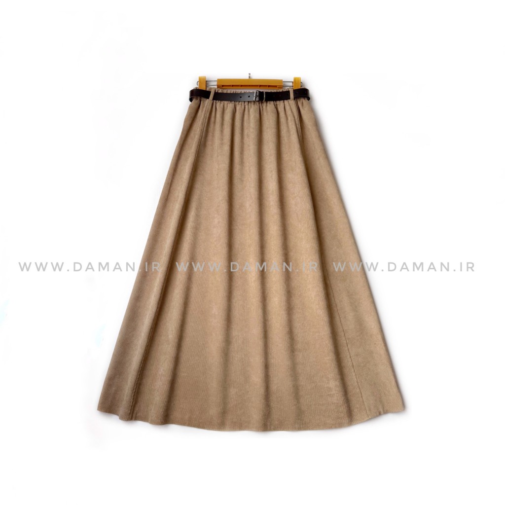 دامن مخمل کبریتی کرم سیر قد 90 با کمربند کد ( 111 )