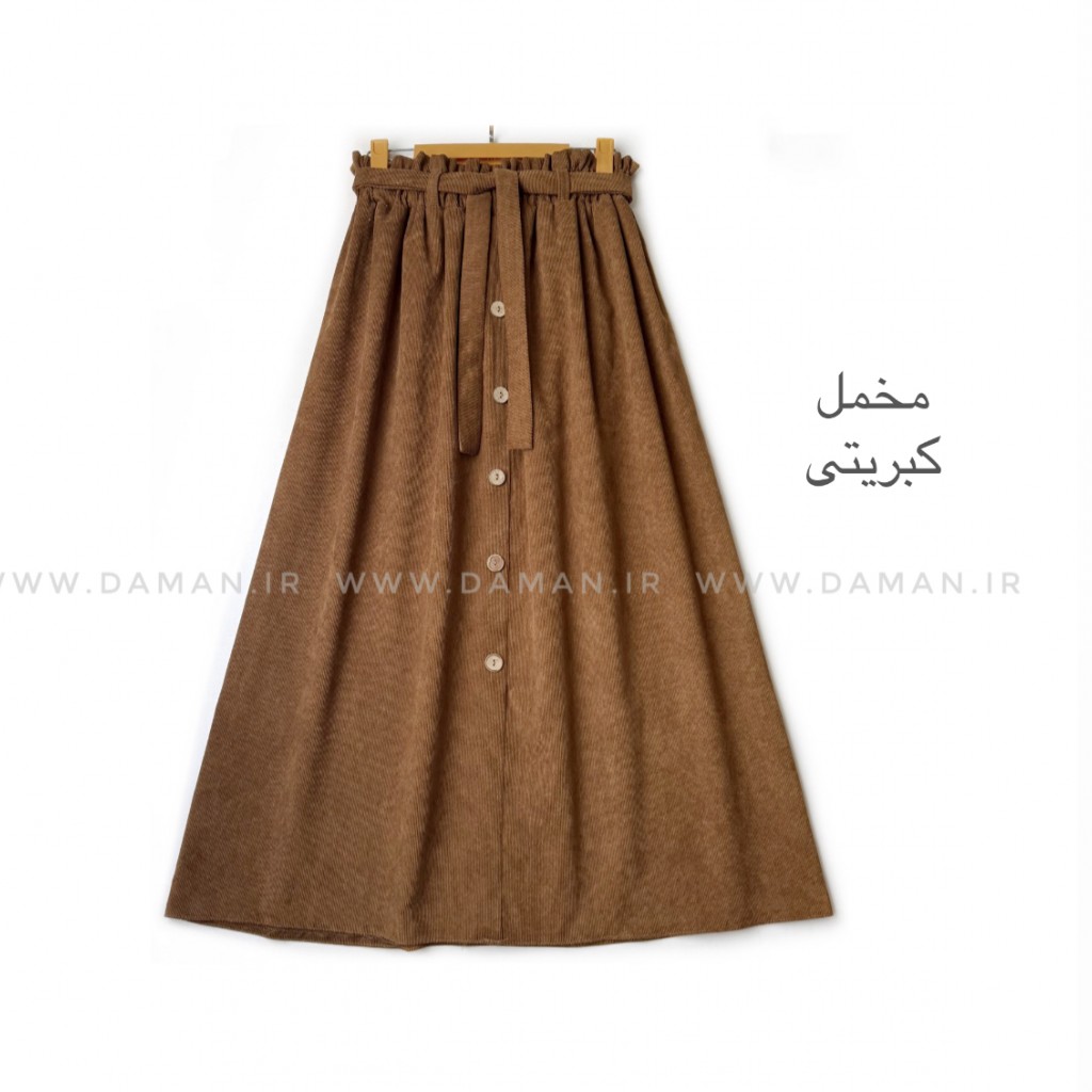 دامن مخمل کبریتی نسکافه ای قد 90 كد (99)