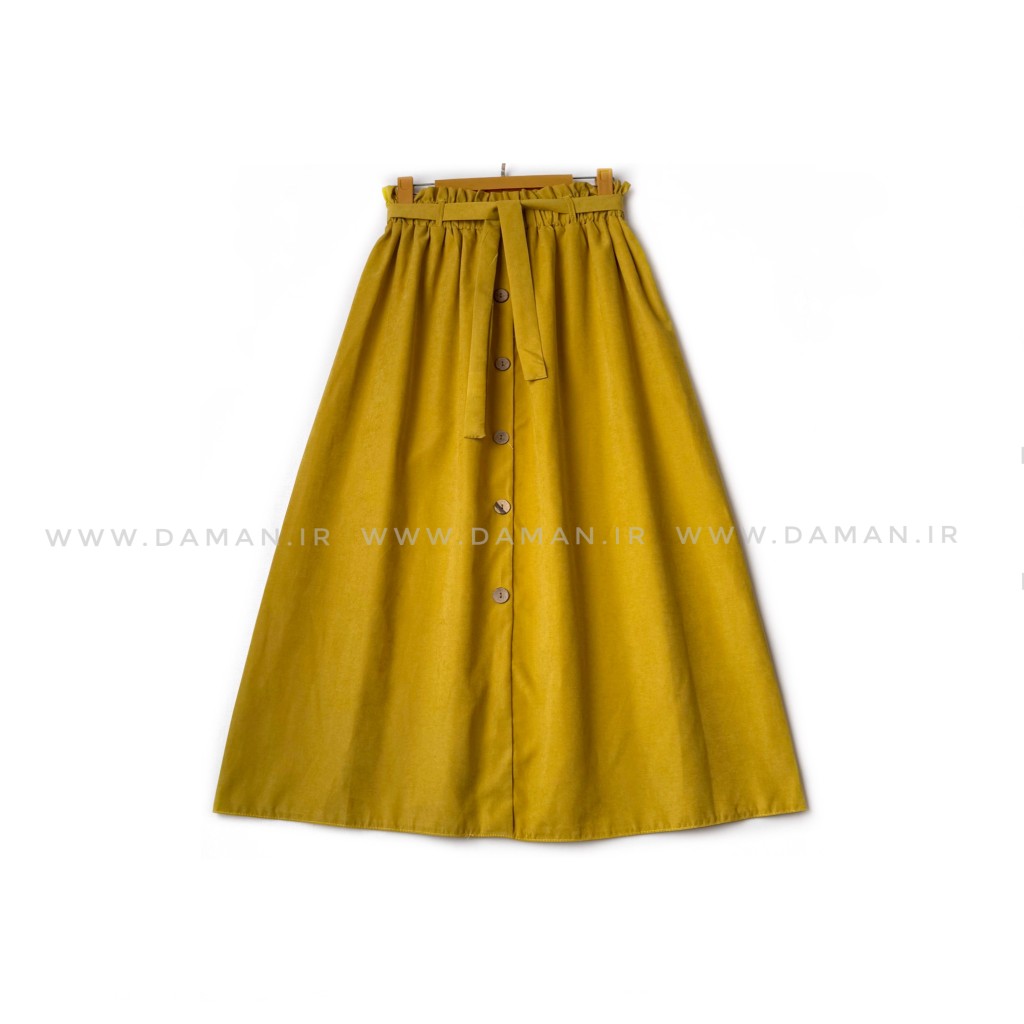 دامن دکمه دار خردلی قد 80 با کمربند کد ( 44 )