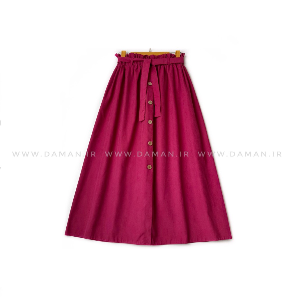 دامن دکمه دار  سرخابی قد 80  با کمربند کد ( 44 )