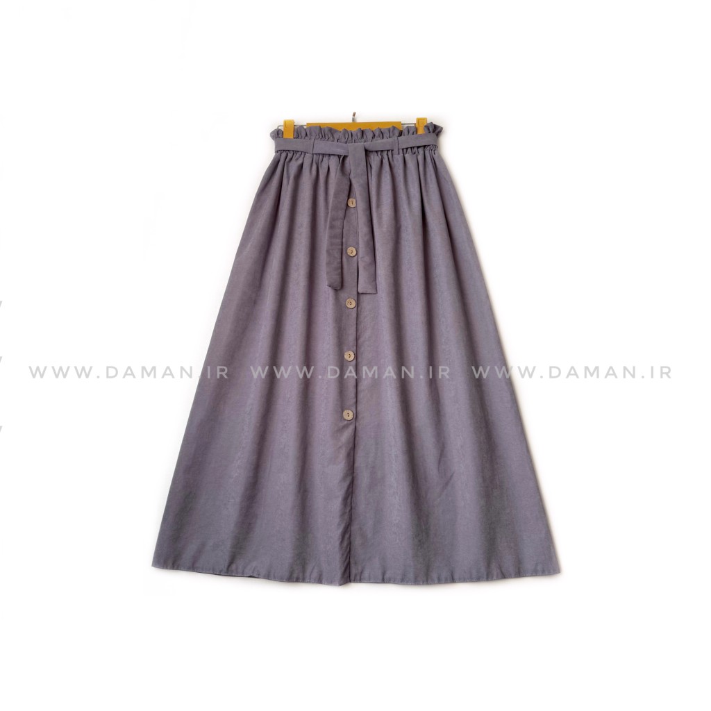 دامن دکمه دار  طوسی  قد 80  با کمربند کد ( 44 )