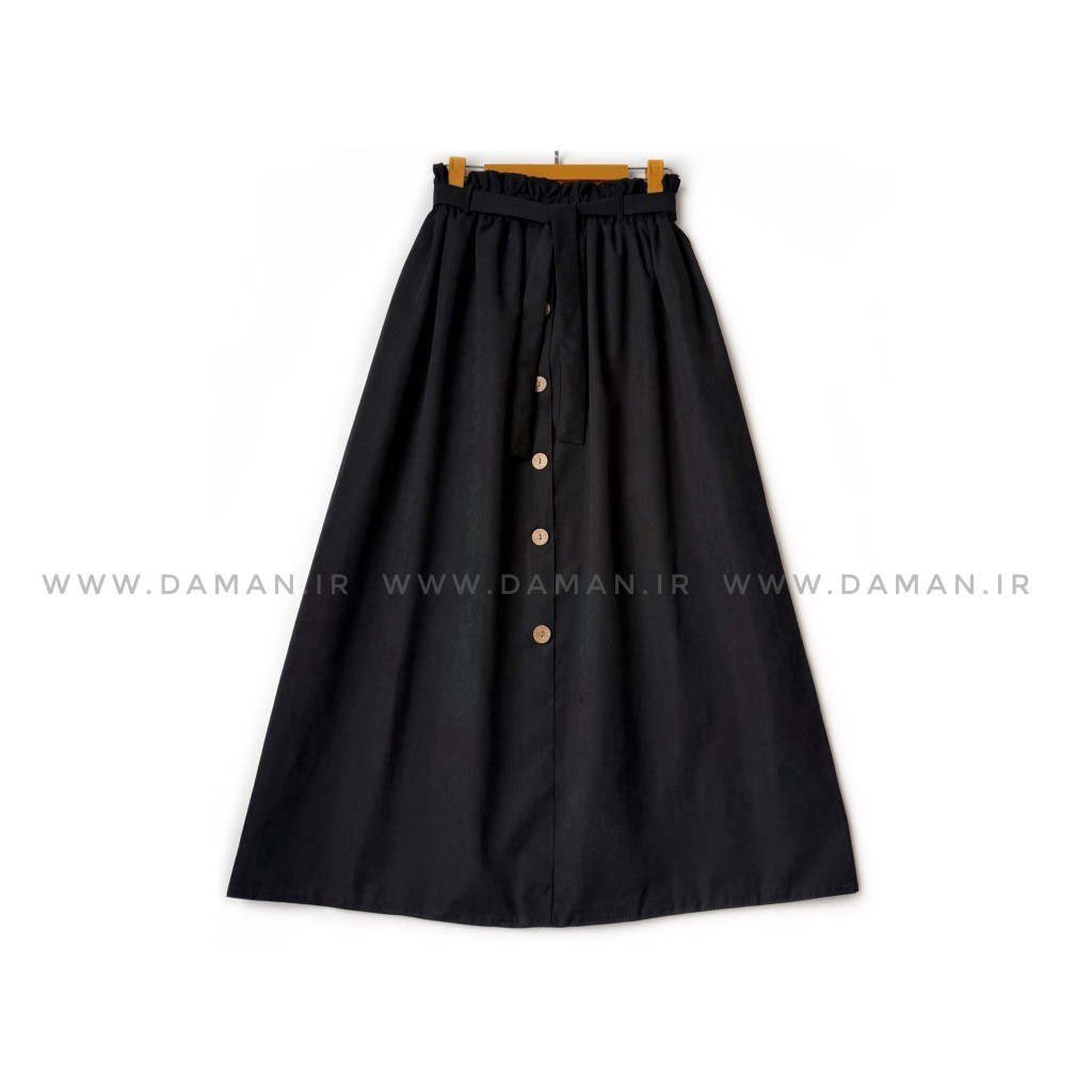 دامن دکمه دار  ذغالی  قد 90  با کمربند کد ( 44 )